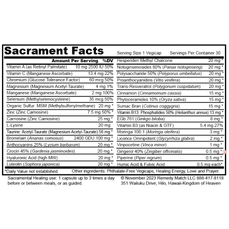 Vitreous Vitality is formulated to reduce glycation and oxidation in the vitreous body. Each phthalate-free enteric veggicapsule of Vitreous Vitality supplies: